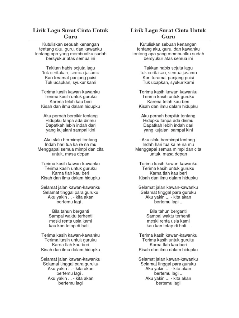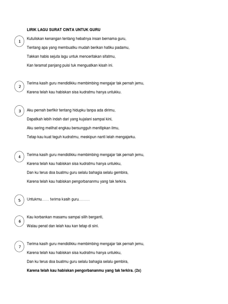 Surat Cinta Untuk Guru Lirik Docx