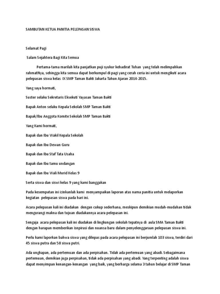 Contoh Sambutan Ketua Panitia Perpisahan Kelas 9 Dapatkan Contoh