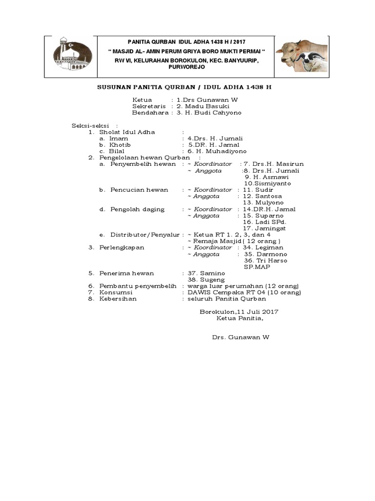 Contoh Susunan Panitia Idul Qurban. All the images that appear are the pictures we collect from various media on the internet. Berfungsi sebagai koordinator lapangan dan mengatur hal-hal teknis di lapangan.