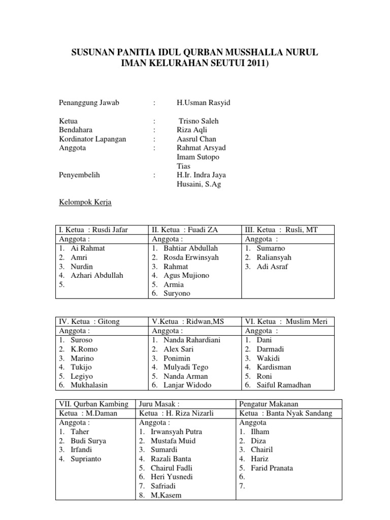 Contoh susunan panitia qurban. Contoh susunan acara rapat schedule acara rapat pembicaraan rapat. The collection that comprising chosen picture and the best among others. Didistribusikan kepada muqorrib 300 penerima kupon sebagian guru sebagian siswa pegawai panitia tenaga pekerja dan masyarakat sekitar.